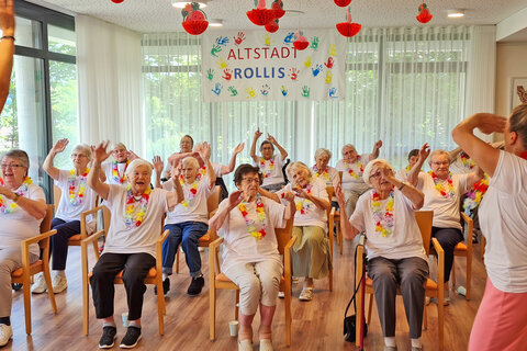 Die Altstadt-Rollis brachten den Saal zum Kochen: Beim Sommerfest im Seniorenhaus an der Altstadt in Herdecke war die Tanztruppe das Highlight. In bester Stimmung feierten Bewohner*innen, Angehörige und Mitarbeitende und genossen den Nachmittag mit Musik und leckerem Essen. „Es war Regen angesagt, deswegen mussten wir drinnen feiern“, berichtet Einrichtungsleiter David Siery. „Die Stimmung war trotzdem super und unsere Seniorinnen und Senioren feierten den Tag bei bester Laune.“