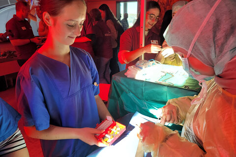 Für erlebbare Eindrücke sorgten zahlreiche Mitmachstationen: ein nachgestellter Operationssaal mit Instrumenten und künstlichen Verletzungen, ein Pflegebett mit lebensechtem Simulator und Virtual-Reality-Elemente – alles zum Anfassen und Ausprobieren. Auch BAVO-Leiter Thorsten Krause weiß, wie wichtig der direkte Austausch bei solchen Veranstaltungen ist. „Unsere Auszubildenden sind unsere besten Botschafter – authentisch, praxisnah und auf Augenhöhe.“ \sjs
