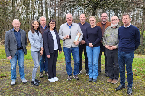Foto von links: Dr. Jörg Stockmann (Evangelisches Krankenhaus Hagen Haspe), Sabine Riddermann (Ev. Stiftung Volmarstein), Christian Münch (Arbeitsmarktpolitik und Fachkräfte SIHK), Christof Hoffmann (Werner-Richard-Berufskolleg Volmarstein), Marco Müller (Bezirksregierung Arnsberg), Pfarrerin Dr. Tabea Esch (Ev. Stiftung Volmarstein), Andreas Barth (Ev. Stiftung Volmarstein), Thomas Weilbier (IG Metall Bezirk NRW).