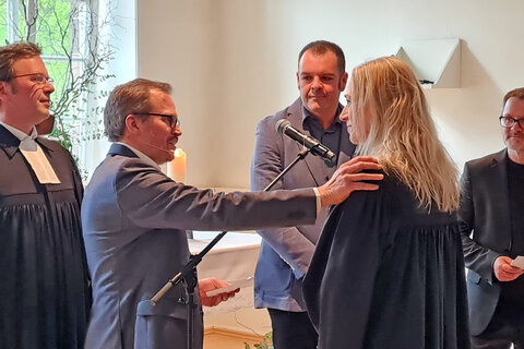 Der Jahresempfang war auch deshalb eine besondere Veranstaltung, weil Pfarrerin Dr. Tabea Esch, Leiterin des Zentrums für Theologie, ins Amt eingeführt wurde. Den feierlichen Gottesdienst zelebrierte Superintendent Henning Waskönig. „Ich sage ,Danke‘ für all das Vertrauen, das mir entgegengebracht wird – und für das herzliche Willkommen“, sagte Tabea Esch am Ende ihrer Predigt. In der hatte sie betont, dass grundsätzlich Menschen mit ihren Schicksalen und auch ihren Begrenztheiten nicht der Ausnahmefall, sondern laut Bibel eher die Regel seien. „Die Menschen, die hier in der Stiftung zuhause sind, brauchen Unterstützung. Und sie bekommen sie durch die Mitarbeitenden, die auf beeindruckende Weise da sind“, so die Theologin.