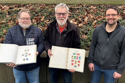 Einen ganzen Kofferraum voller Briefmarken haben Armin Altmann und Gerd Beloch vom Verein der Briefmarkenfreunde Dortmund-Huckarde in die Werkstatt für behinderte Menschen der Evangelischen Stiftung Volmarstein gebracht. Darunter sind neben losen Marken auch viele sehenswerte Alben mit liebevoll zusammengestellten Sammlungen.