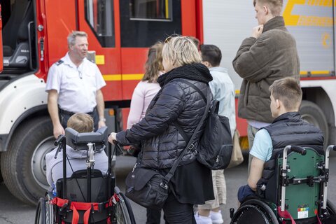Einmal am Steuer eines Feuerwehrautos sitzen – davon träumen viele Kinder und Jugendliche! Dieser Wunsch wurde für die Bewohnerinnen und Bewohner des Matthias-Becker-Hauses wahr.