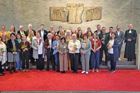 „Es ist wichtig, im Alltag innezuhalten und Danke zu sagen“, betonte Tabea Esch. In ihrer Predigt erinnerte sie an den Gründer der Volmarsteiner Stiftung, Pfarrer Franz Arndt. Er pflegte den Leitspruch: „Die Not ist groß. Aber sie muss zerschellen an der Liebe, die noch viel größer ist.“ An die Jubilare und Jubilarinnen gerichtet sagte sie: „Sie haben sich von dieser Not berühren lassen und waren für die Menschen da – mit Herz und Haltung. Durch Ihre Arbeit wird Gott sichtbar.“