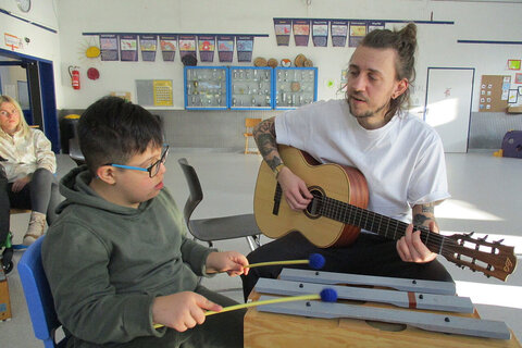 Welche Farbe hat ein Kuss? Ein Schuljahr lang haben sich 36 Mädchen und Jungen der Oberlinschule mit dieser Frage beschäftigt. Um die Antwort herauszufinden, erstellten die zwischen sechs und elf Jahre alten Schülerinnen und Schüler mit schweren Behinderungen viele Bilder, experimentierten mit Farben und probierten diverse Spiele aus. „Wir haben herausgefunden, welche Farbe ein Kuss hat“, so die Lehrkräfte Carla Klimke und Benedikt Ricken schmunzelnd.