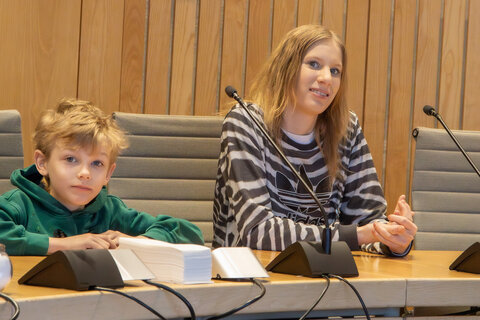 - Line (16 Jahre) und Pascal (8 Jahre) im Parlament in Düsseldorf