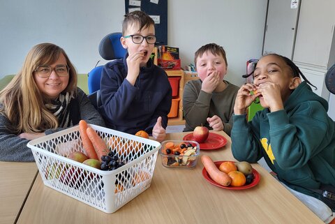 Kinder der Oberlinschule genießen Obst und Gemüse