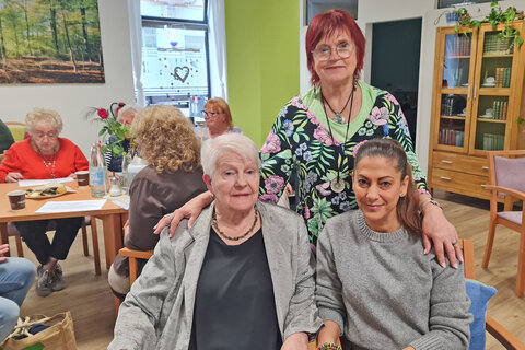 Foto: Christa Schäfers (stehend), Christa Bilgic und ihre Tochter Suzan sind begeistert von der Tagespflege Wiesenviertel