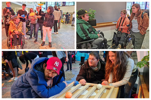 Das macht richtig Spaß“ sagt Güldane Baars und stößt die Holzkugel mit Schwung über das Spielbrett. „Ein bisschen fester …!“, feuert ihr Ehemann Marcus sie an. Beim inklusiven Kultur-Parcour im Wittener Saalbau genießen die beiden einen kurzweiligen Nachmittag. Das Ehepaar lebt in einem Wohnprojekt der Ev. Stiftung Volmarstein im Preinsholz in Witten-Annen. Dort erfahren sie so viel Unterstützung wie nötig und genießen gleichzeitig so viel Selbstständigkeit wie möglich. Kultur erleben gehört dazu.