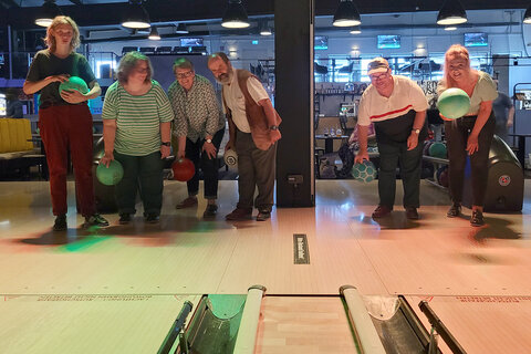 „Strike!“, hört man es schon am Rande der Bowling-Bahn jubeln und eine fröhliche Gruppe klatscht sich ab. Jeden zweiten Mittwoch im Monat treffen sich die Männer und Frauen aus dem Ambulant Betreuten Wohnen (ABW) der Evangelischen Stiftung Volmarstein im Bowling Room in Hagen. Die kleine Truppe besteht aus Menschen mit Behinderungen, die selbständig mit Assistenz in eigenen Wohnungen leben. Unterstützt werden sie dabei durch das Team des Ambulant Betreuten Wohnens der Ev. Stiftung Volmarstein. Das Bowlen ist inzwischen fest in ihrem Kalender gebucht.