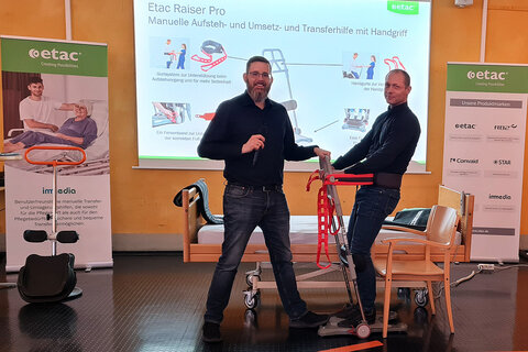 In den Themenschwerpunkten „Mobilitätshilfen für die häusliche Pflege“ und „Sicher und mobil trotz Treppe“ stellten Referenten der Firmen Etac, Angio Lifte, Mercado medic und Heymer Rehatechnik Hilfsmittel und technische Systeme vor, die in der Wohnung von Menschen mit Pflegebedarf zu mehr Mobilität führen können oder den Zugang zur Wohnung erleichtern, auch wenn keine umfassende bauliche Barrierefreiheit hergestellt werden kann.
