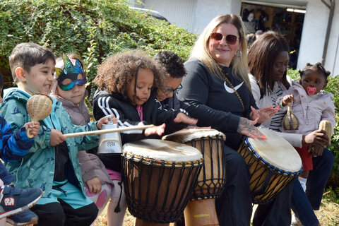 Traumhaftes Wetter, Trommelklänge und Kinderlachen erfüllten den Platz um die Gevelsberger Liebfrauenkirche: Beim Kinderfest der Kita Zauberstern unter dem Motto „Musik verbindet Kulturen“ verbrachten große und kleine Gäste unterschiedlichster Nationen einen fröhlichen Nachmittag. „Es ist schön, diesen Tag zusammen zu genießen unabhängig von der Sprache“, freut sich die Kita-Leitung, Sabrina Hinz-Ziganow. „Musik schafft eine Bindung!“