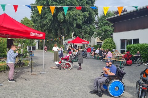 Bei Kaffee, Kuchen und Leckerem vom Grill genossen auf dem Sommerfest in Haus Berchum alle das herrliche Wetter und die mitreißende Musik und tanzten mit und ohne Rollstuhl fröhlich in Hof und Garten der Anlage. Wer Lust hatte, konnte auch eine Runde auf dem Großtrampolin einlegen oder die mobile Kegelbahn nutzen. Und wie jedes Jahr waren auch wieder die Damen und Herren vom Lions Club Hagen aktiv dabei, die das Haus seit über 40 Jahren mit Spenden und aktiver Teilnahme begleiten. Mit so viel Freude und Schwung kann der Sommer richtig losgehen.
